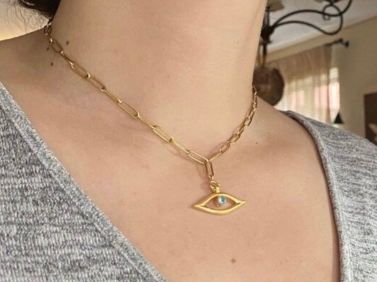 $29.95 USDEvil eye necklace gold paperclip stainless steel chain