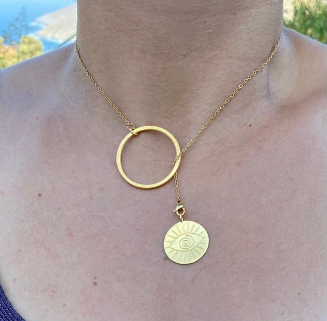 $29.95 USDLariat necklace circle with Macedonian star, Greek necklace