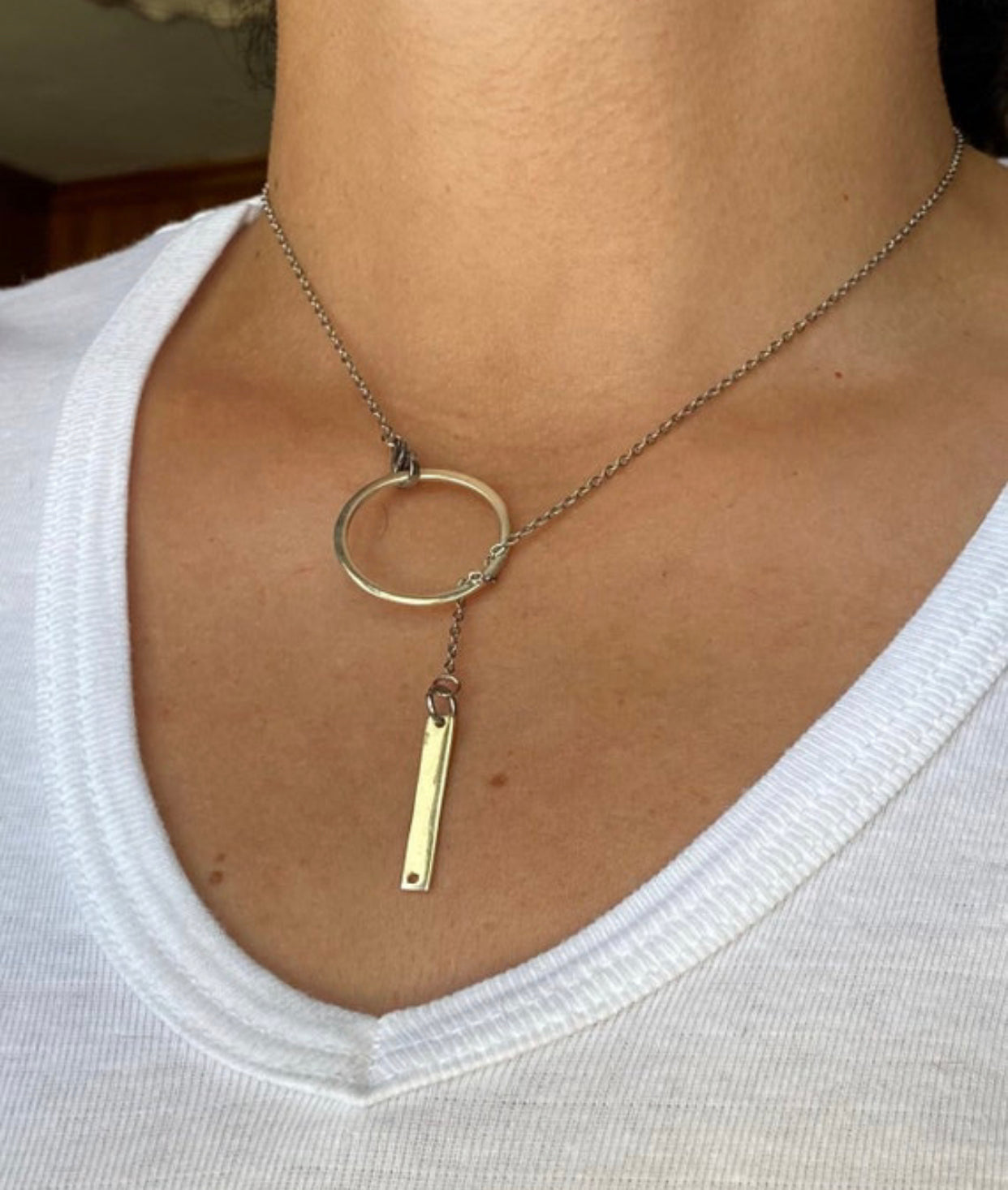 $39.00 USDLariat necklace silver circle and bar rectangle necklace