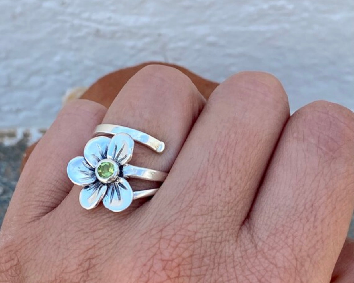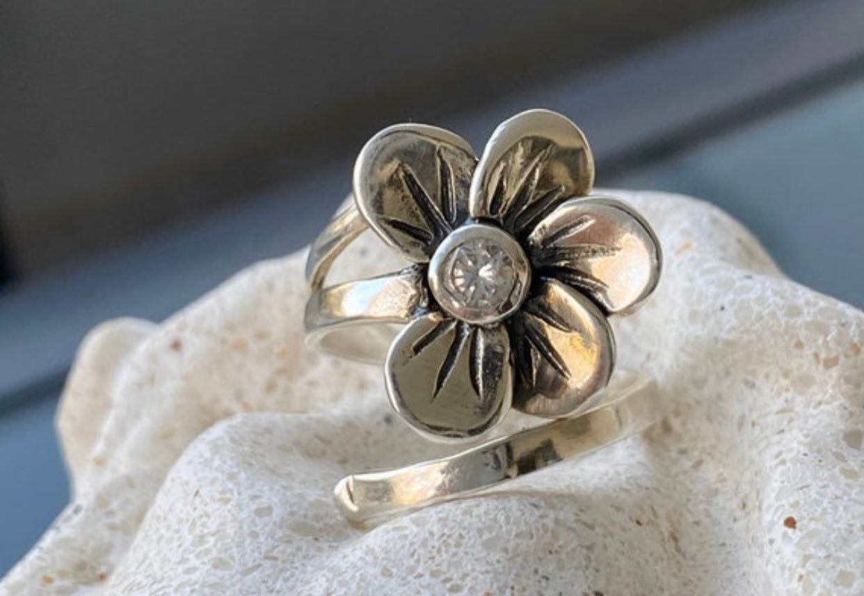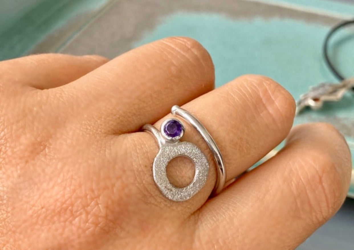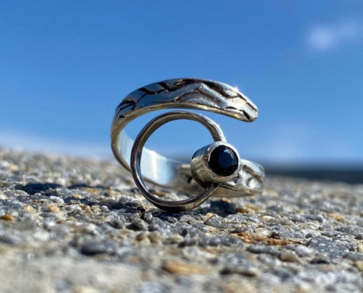 black gemstone ring silver tribal ring circle