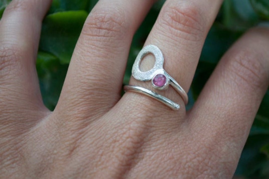 $59.95 USDSilver spiral ring adjustable red garnet and pink tourmaline