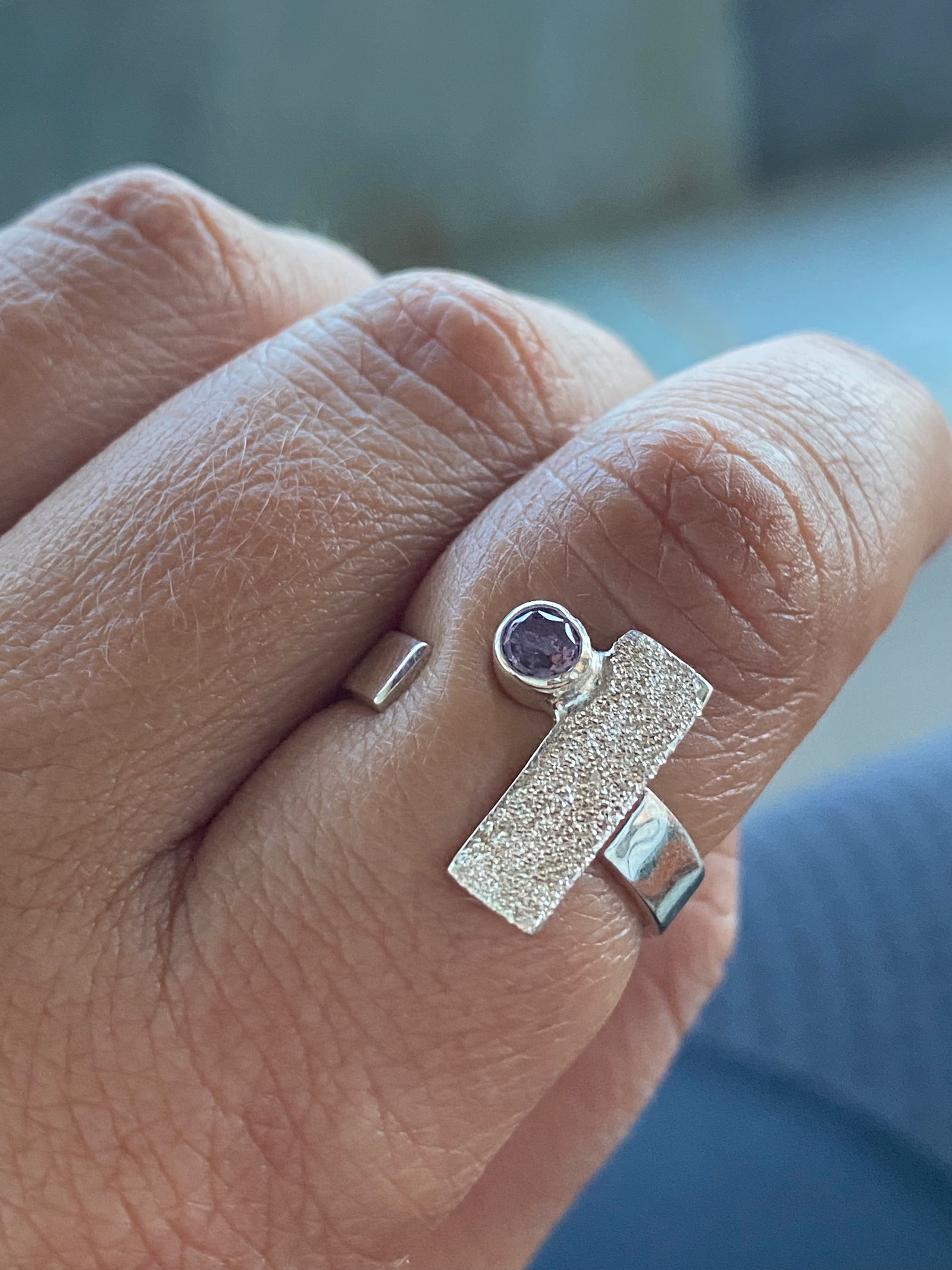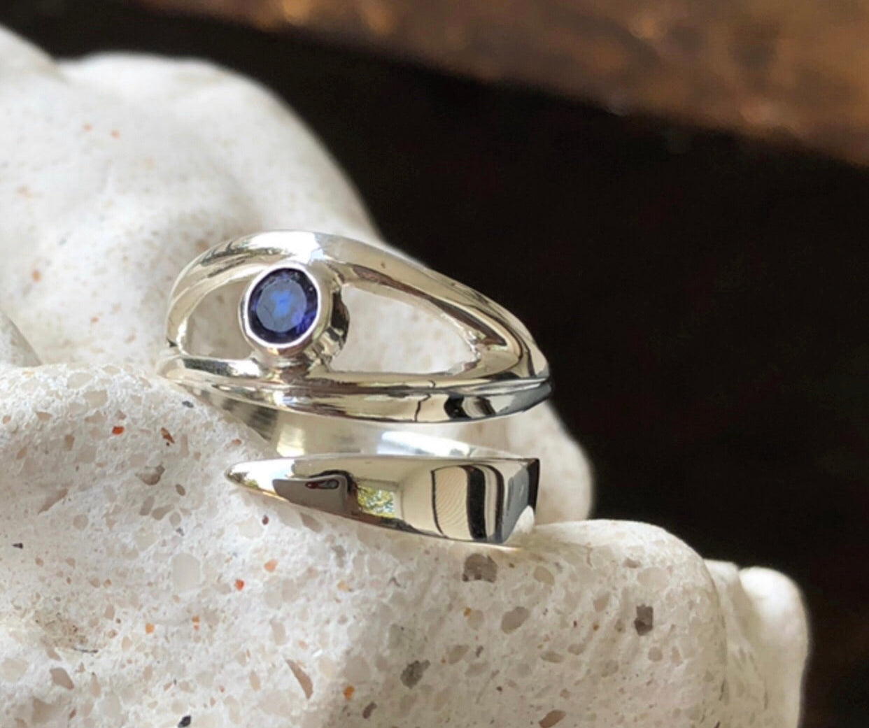 $79.95 USDevil eye ring with iolite gemstone adjustable silver ring