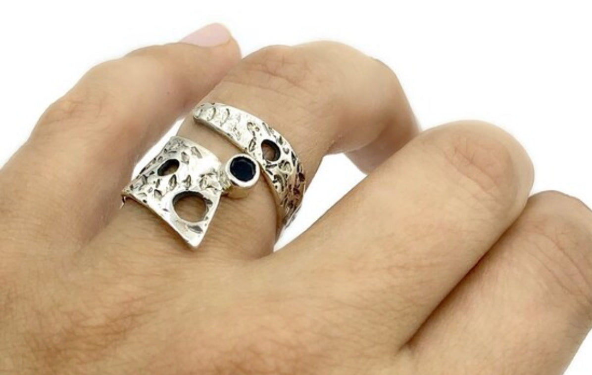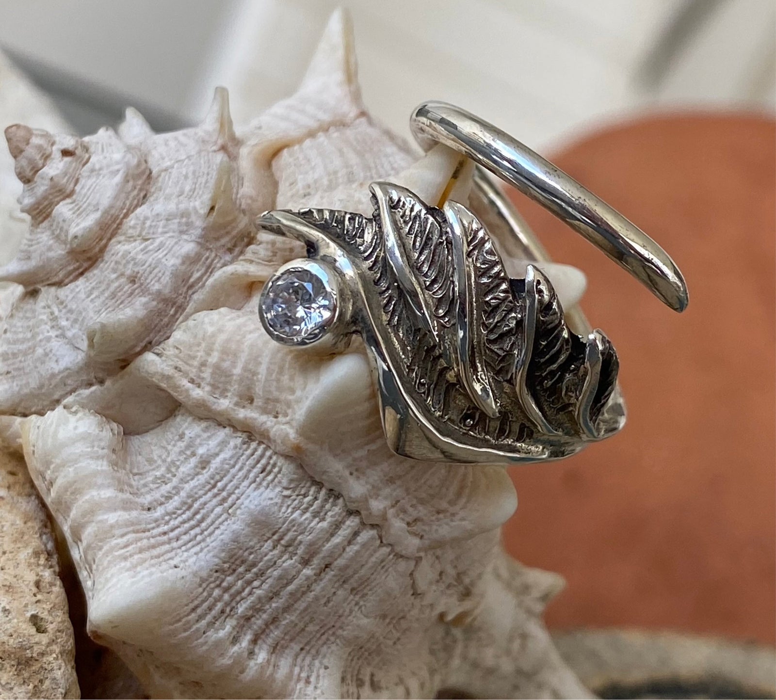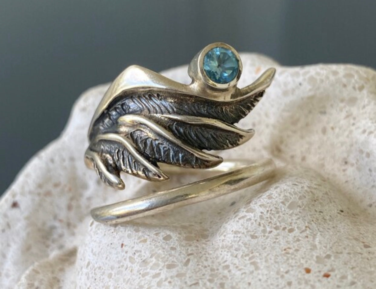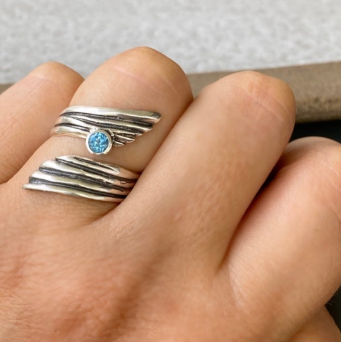 $29.95 USDlarge blue topaz silver wrap ring handmade wing ring