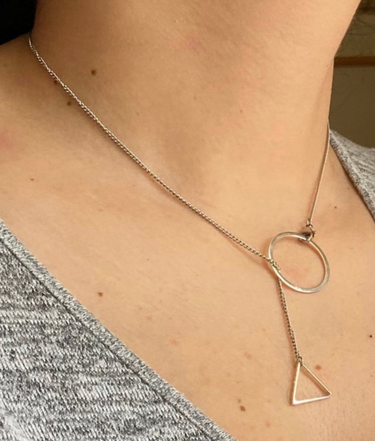 $19.00 USDCircle and triangle Lariat y necklace silver