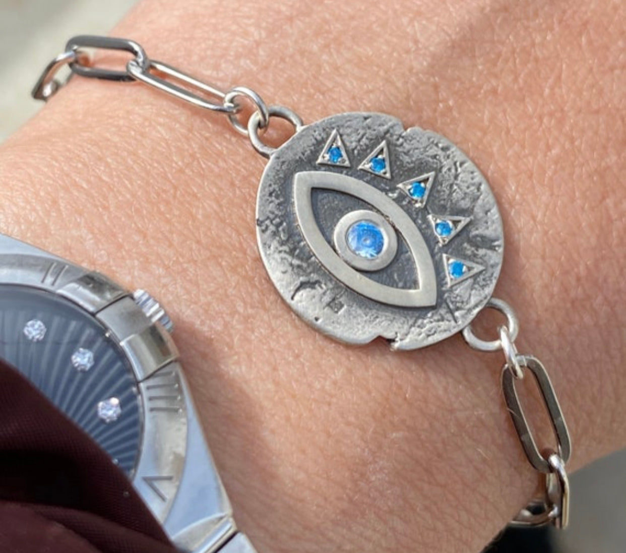 $39.00 USDEvil eye bracelet, blue topaz stone, evil eye circle bracelet