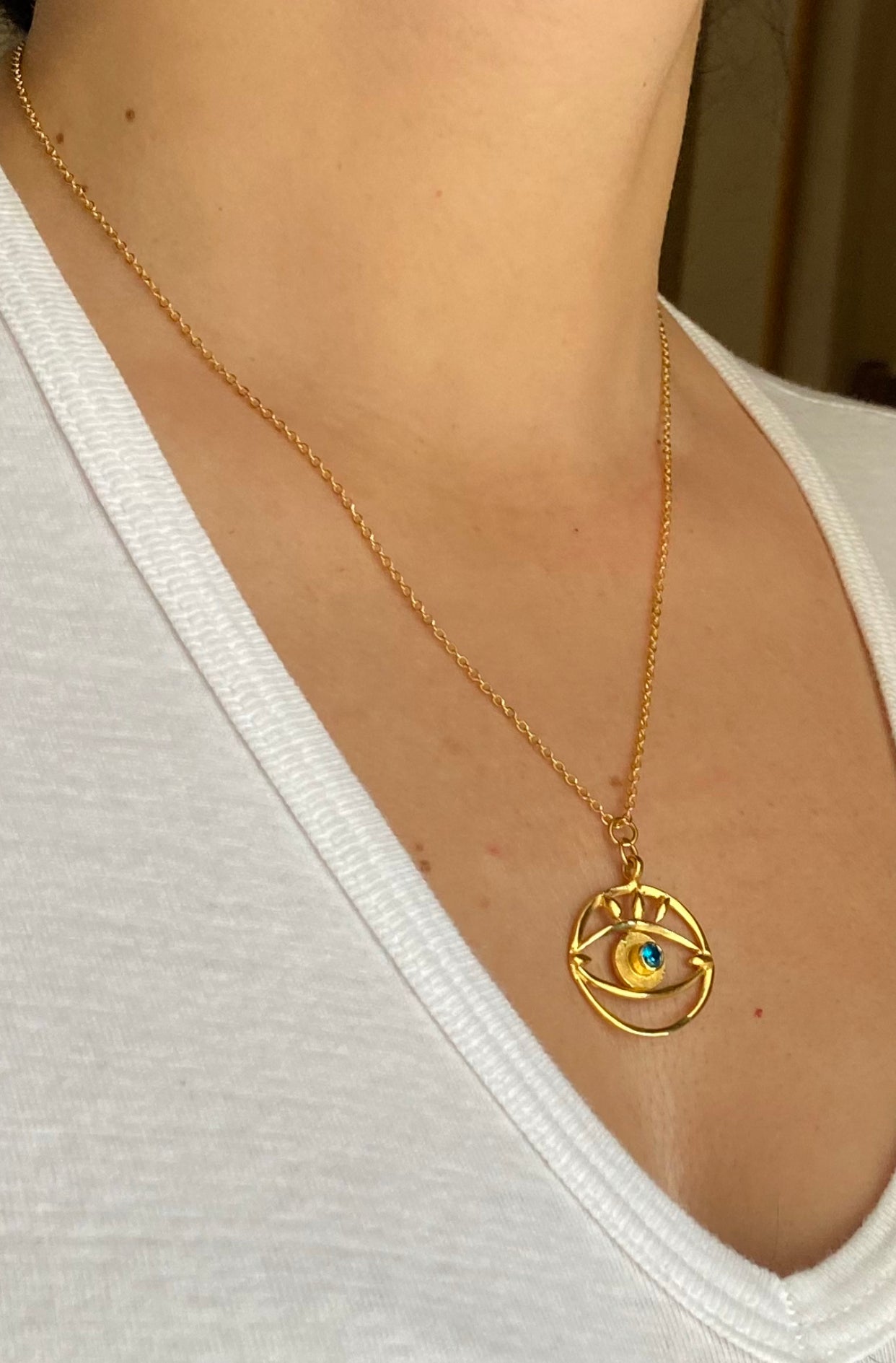 evil eye necklace with blue topaz gemstone