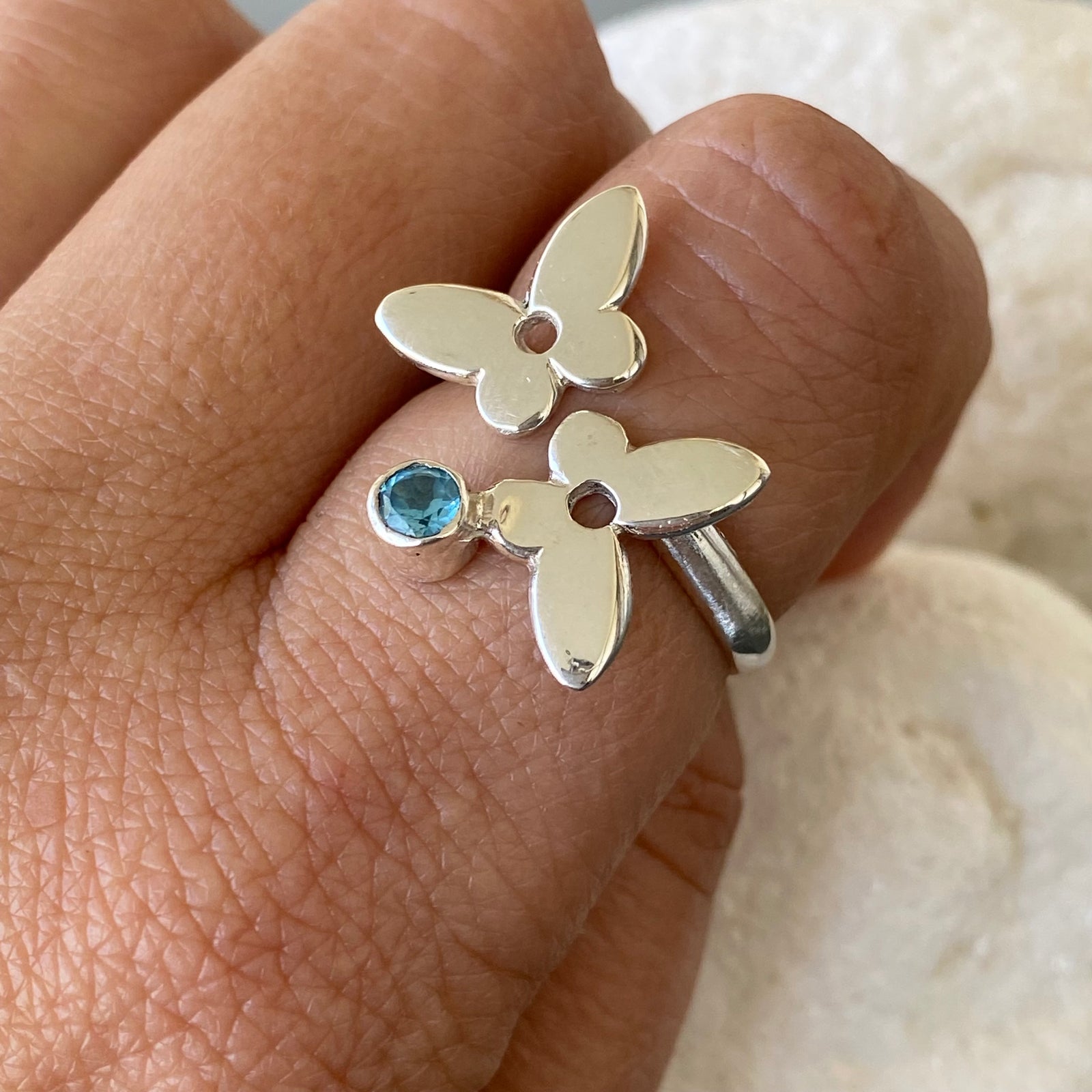 $69.95 USDSilver Butterfly ring adjustable with blue gemstone