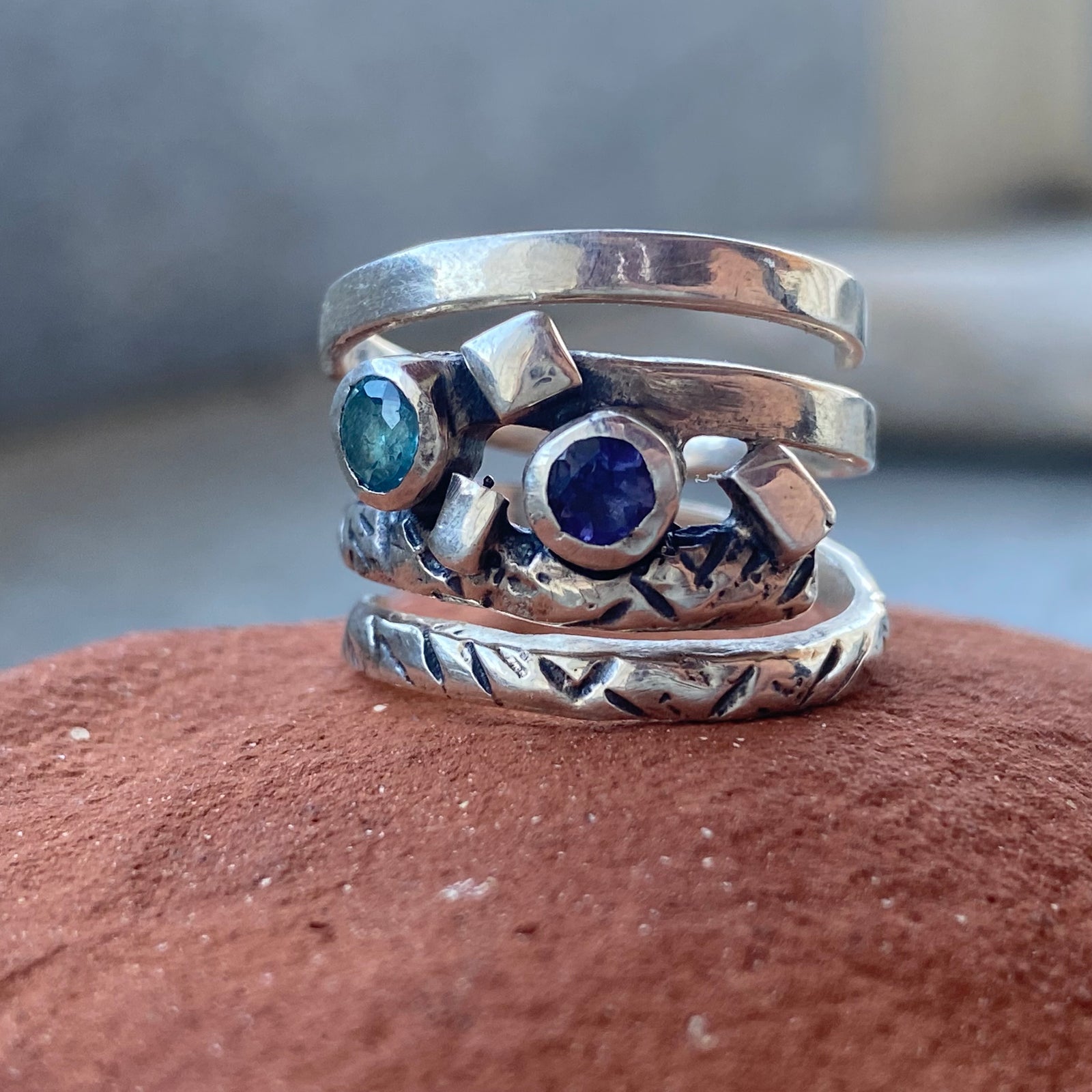 $69.95 USDSilver spiral ring with blue gemstones, silver spring ring