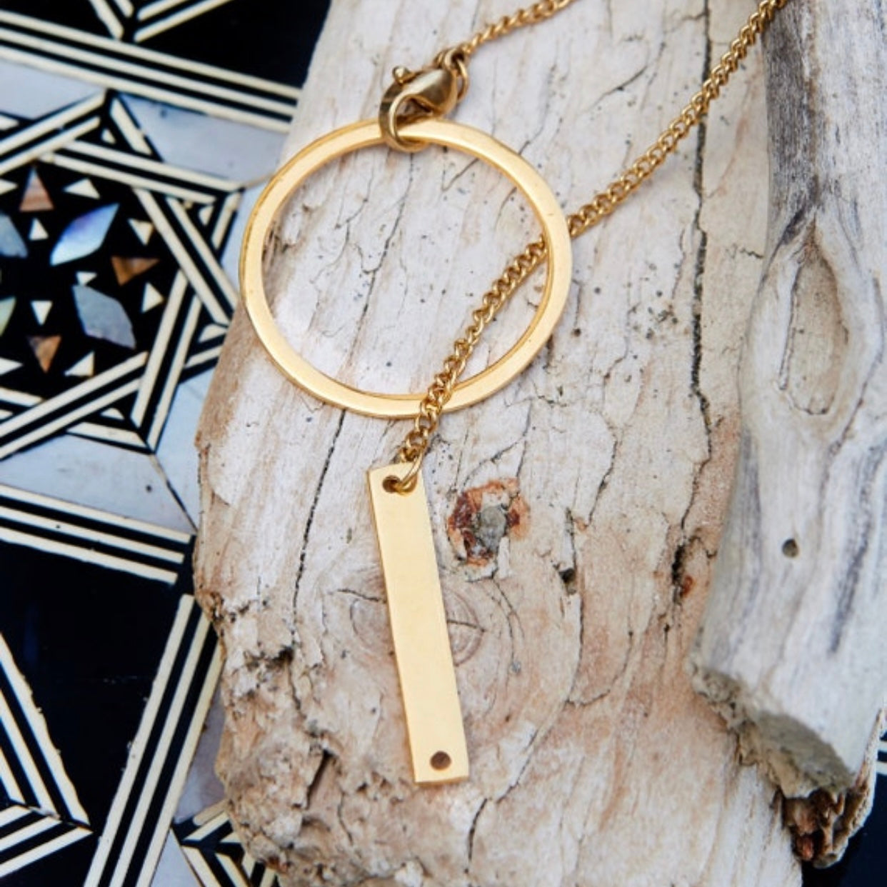 Lariat necklace circle and line necklace